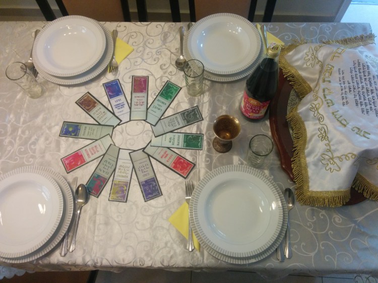 בתמונה: הדפס של בולים על סמלי השבטים שהוציא השירות הבולאי