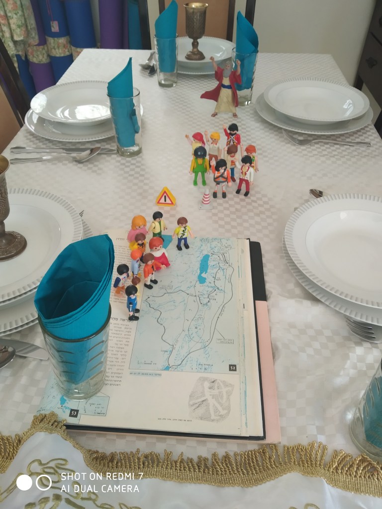 נושאים לשיחה משפחתית: 1. בחרתי בובות עם משקפות, כדי להראות את הציפייה של עם ישראל להיכנס לארץ. שימו לב לבובה של גבר לא מגולח, הבובות שנושאות ציוד טיול. נושא לשיחה: מה ההבדל בין מסע לבין טיול?